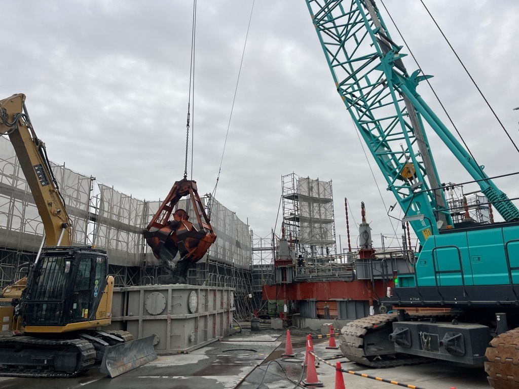騒音・振動計を設置し、周辺住居への影響を監視しながら作業をしています。