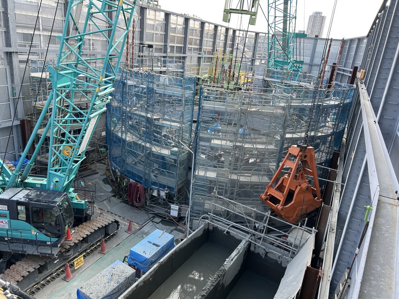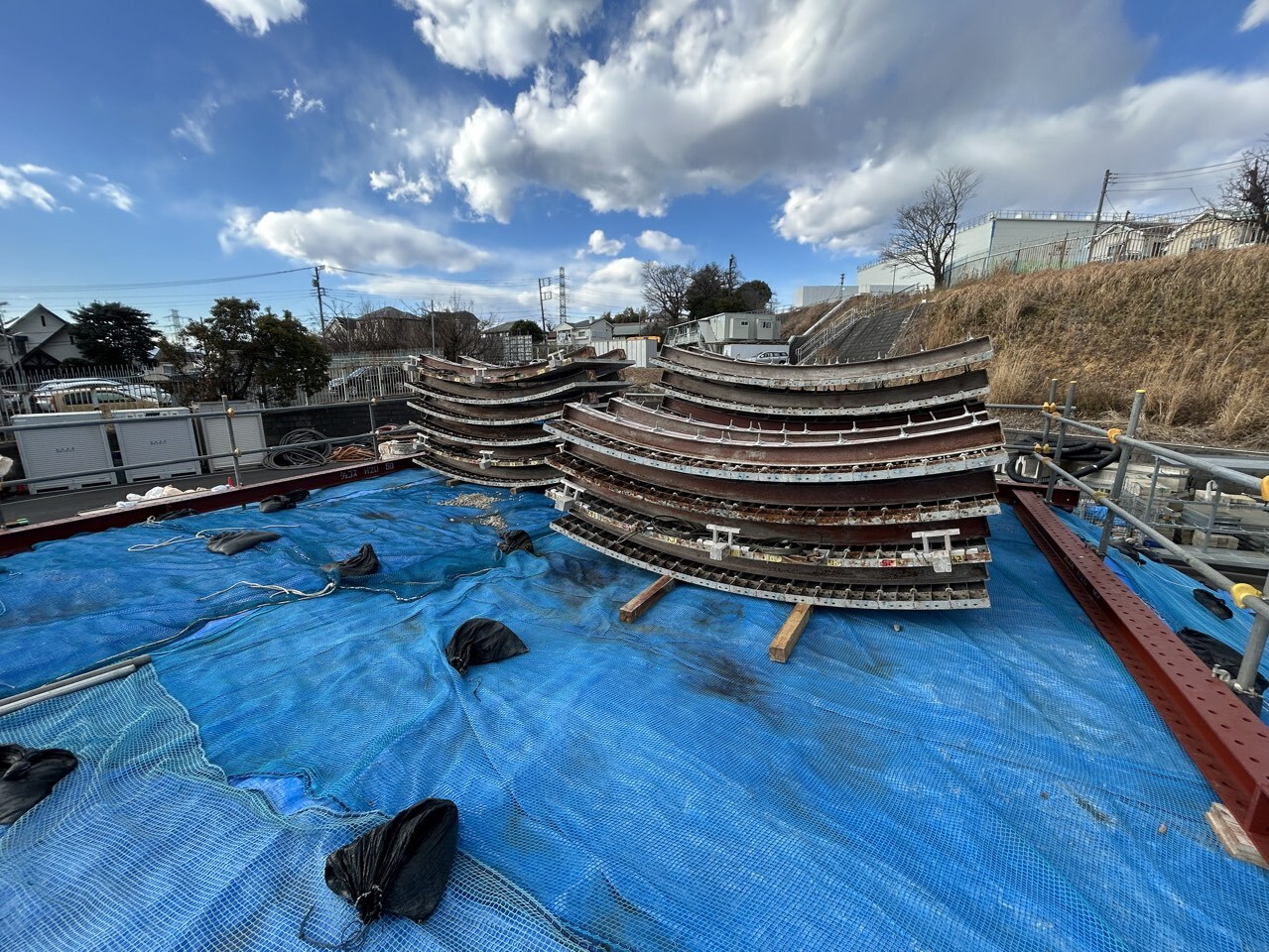 コンクリート打設時は防音テントを設置することで、工事車両による騒音を低減しています。
